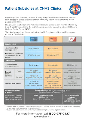 As of 1 September 2014, the Pioneer Generation Package is available at Chang Clinic. Government rebates may be used for a variety of acute and chronic medical conditions (as listed below). Please inquire at the reception counter, and please bring your Pioneer Generation card at every visit to enjoy these government benefits.